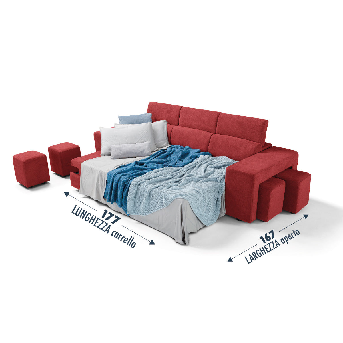 In tessuto idrorepellente/antimacchia, con carrello letto estraibile