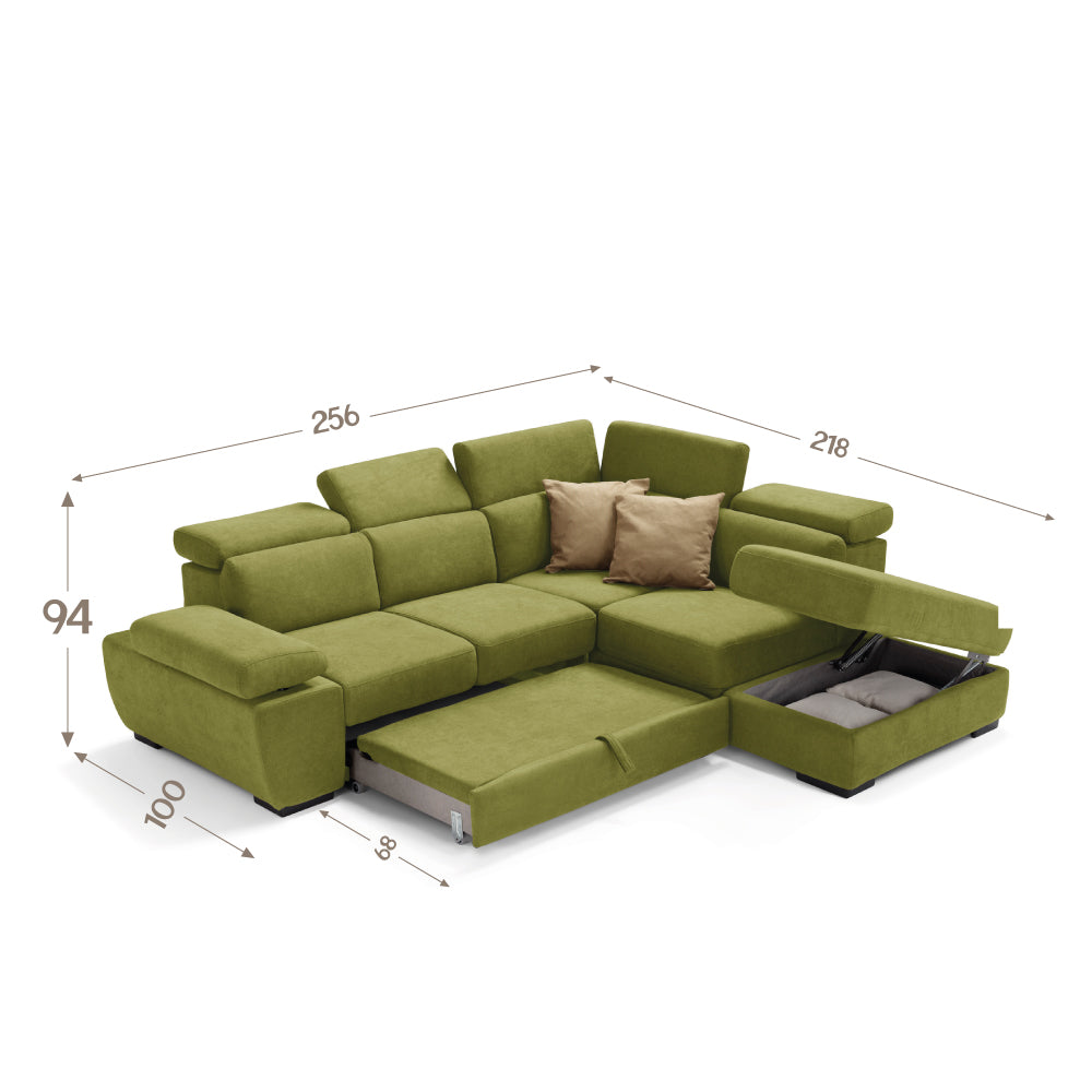 FABIOLA divano angolare - pouf contenitore e apertura letto KOMODO