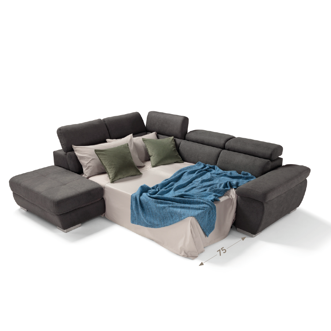 Alexa di Komodo è il divano che si adatta a qualsiasi tipologia di arredo. Le sue linee morbide e semplici garantiscono una comodità senza eguali. È dotato di 5 poggiatesta regolabili manualmente studiati per il massimo confort della zona cervicale e un carrello estraibile che lo trasforma in pochi secondi in un pratico letto. Il modello è completato da un pratico pouf contenitore.