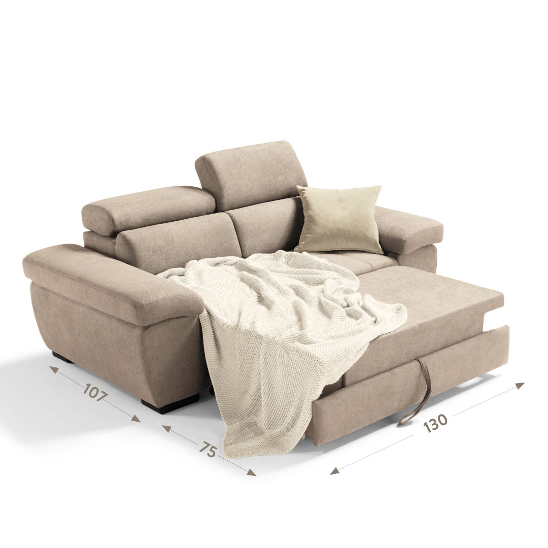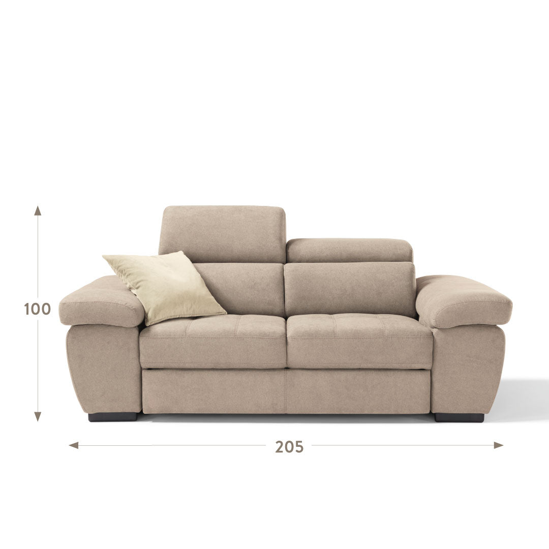 Alexa di Komodo è il divano che si adatta a qualsiasi tipologia di arredo. Le sue linee morbide e semplici garantiscono una comodità senza eguali. È dotato di 2 poggiatesta regolabili manualmente studiati per il massimo confort della zona cervicale e un carrello estraibile che lo trasforma in pochi secondi in un pratico letto.