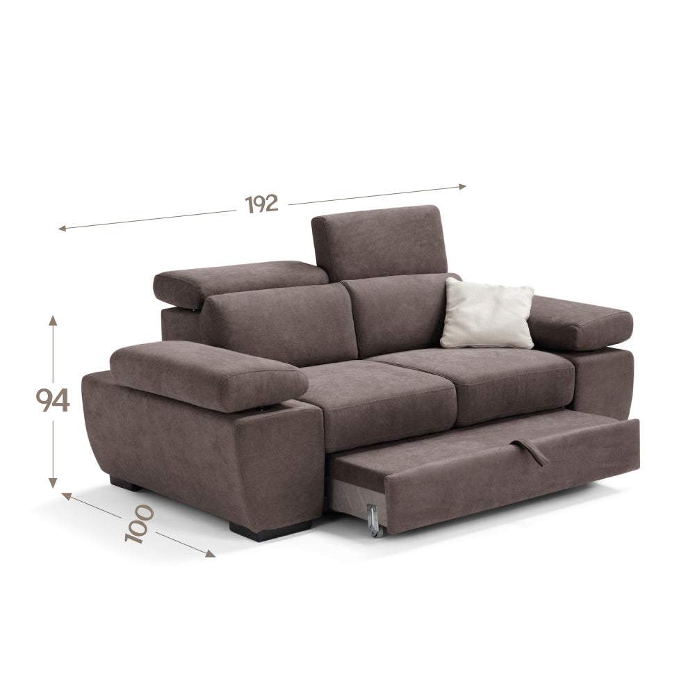 FABIOLA divano lineare 2 posti - apertura letto e bracciolo regolabile KOMODO