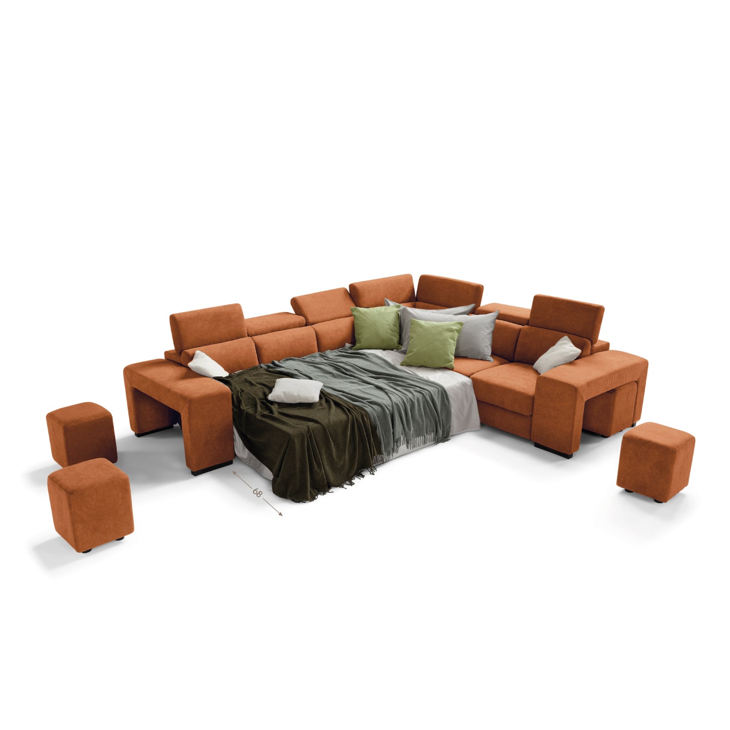 TALENTO divano 3 posti max, angolo terminale e poltrona jolly con cassetto portaoggetti - apertura letto KOMODO